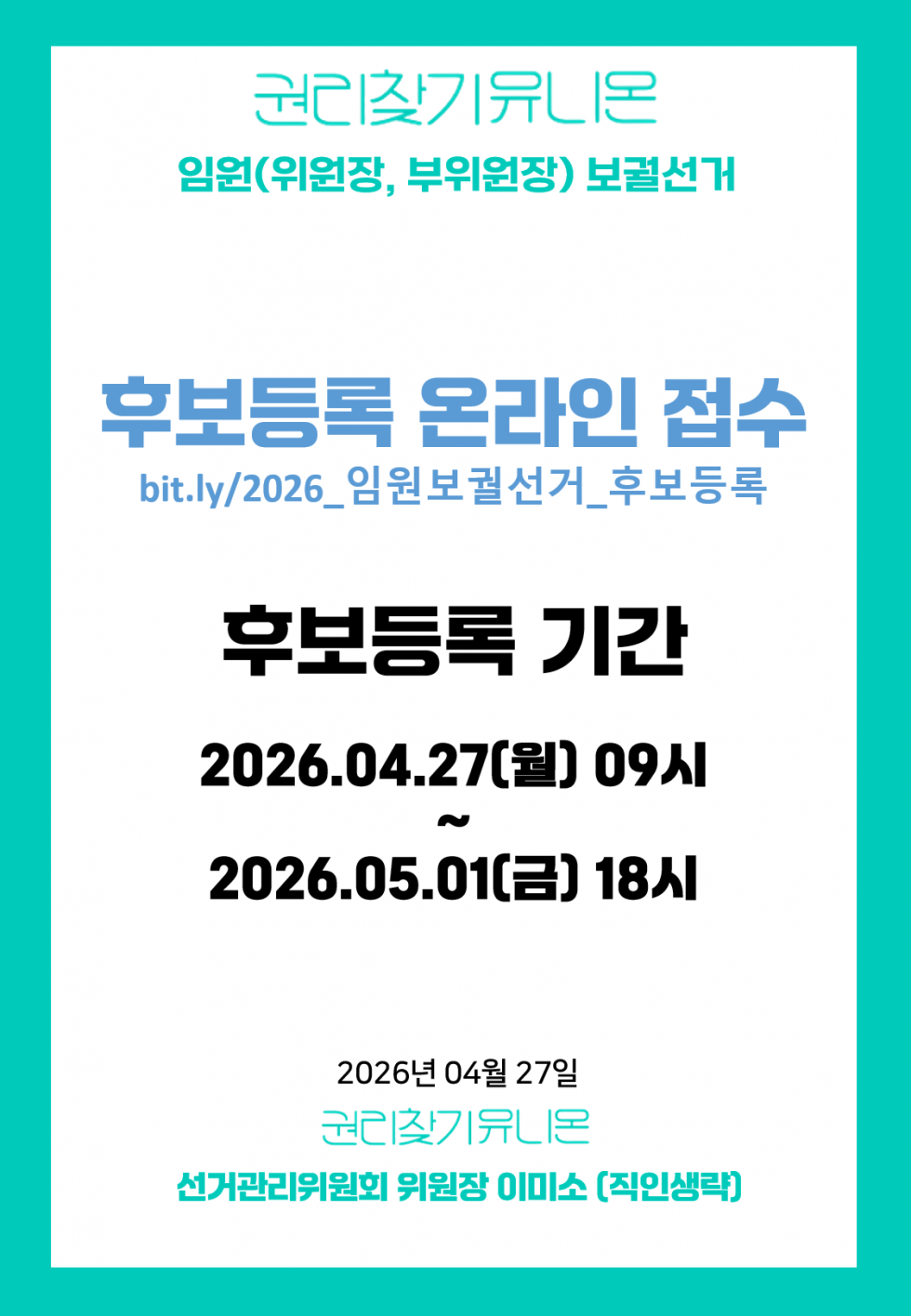 1. 임원 선거에 입후보할 조합원은 아래의 온라인 신청양식(구글폼)을 통해 후보등록을 바로 신청할 수 있습니다.