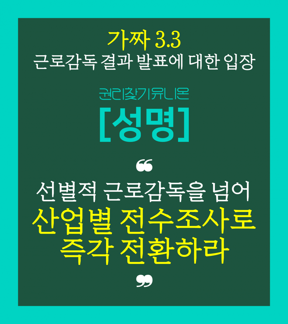 ❝선별적 근로감독을 넘어 산업별 전수조사로 즉각 전환하라❞
